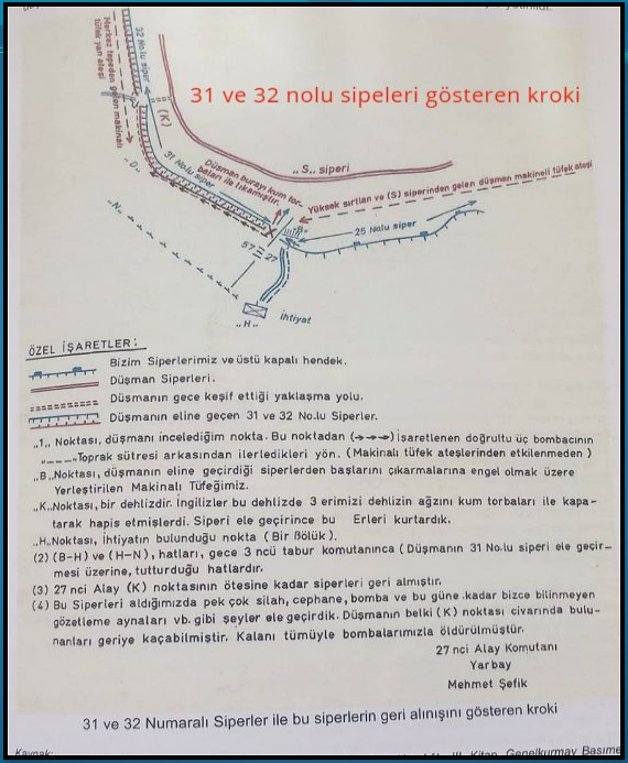 Şefik Bey 5 Haziran sabahı Tümen kumandanı Albay Mustafa Kemal’e verdiği harp raporunun son bölümünde “Bu üç el bombacı erlerinden birinin siperlerin geri alınması tamamlanırken (S) siperinden gelen bombayla şehit olduğu, birinin yaralandığı” kaydını düşer.