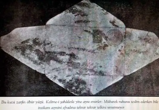 (1) Ben Harbiye’de 1923 yılında bölük kumandanı iken bu levha, okulun müzesinde duruyordu. Zarfın aslı şimdi Askeri Müze’dedir. 1916’da Kut’ül Ammare’de yapılan Şehitler Abidesinin yanına Muzaffer’i gömmüştük.